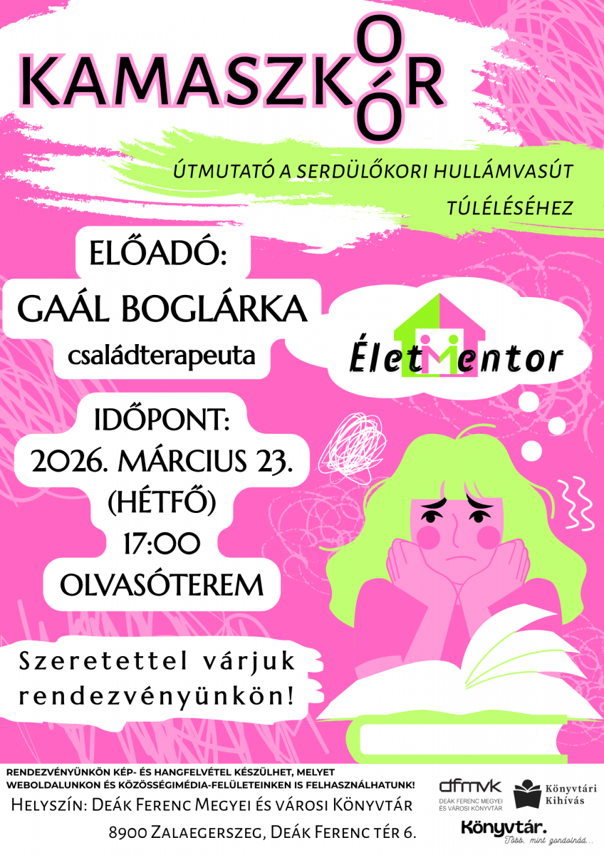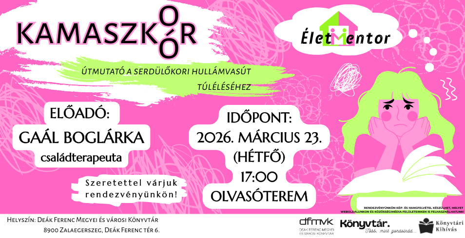 Visszatér az Életmentor! A 2026-os szezon első előadását Gaál Boglárka tartja. Középpontban a hírhedt kamaszkor és a vele járó nehézségek amikkel a szülők találkozni fognak. Szeretettel várjuk az érdeklődőket!