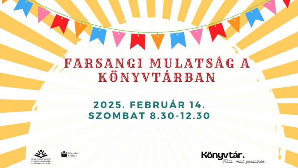 Farsangi mulatság a könyvtárban! Február 14-én gyermekkönyvtárunkban jelmezversenyt tartunk! A programon való részvétel ingyenes! Sok szeretettel várunk mindenkit!