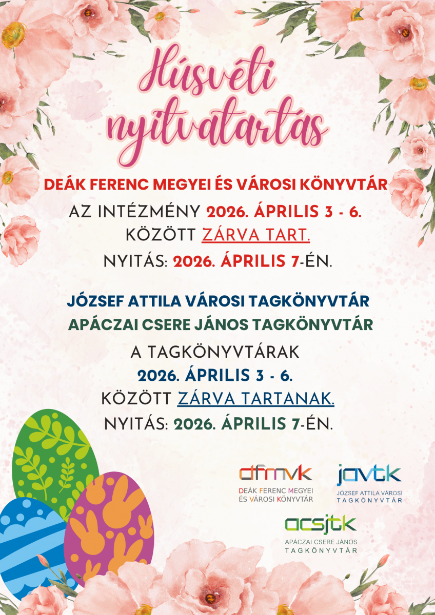 Kedves Olvasóink! Könyvtáraink nyitvatartása az alábbi módon változik az ünnepekre! Megértésüket köszönjük!![]()