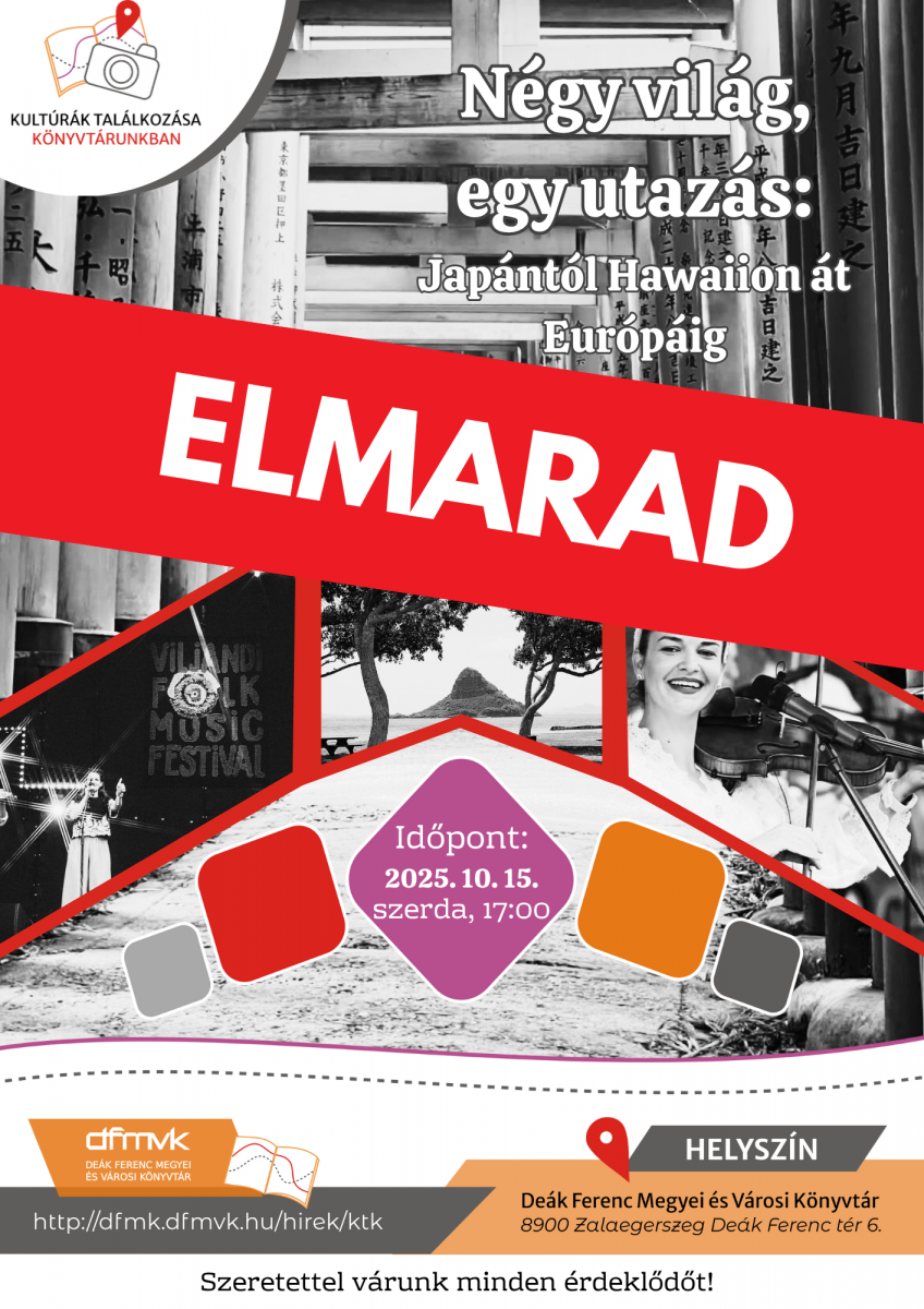 Kultúrák Találkozása Könyvtárunkban - Négy világ, egy utazás Japántól Hawaiion át Európáig - ELMARAD