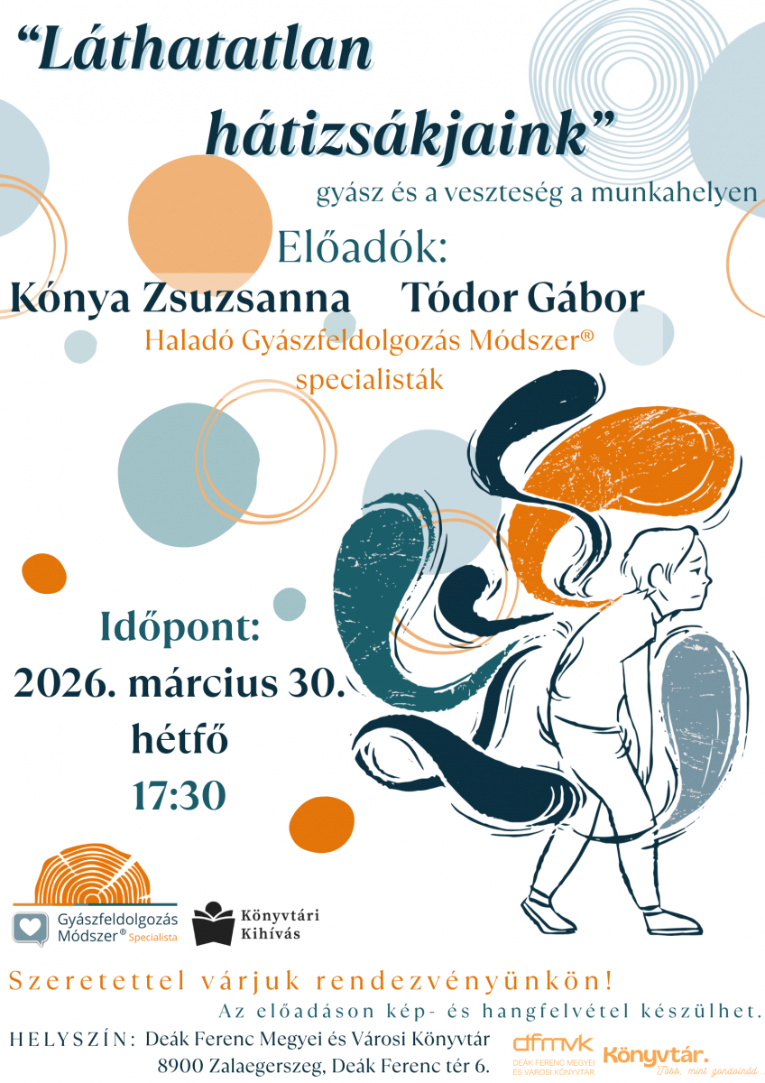 Kónya Zsuzsanna és Tódor Gábor Haladó Gyászfeldolgozás Módszer specialisták visszatérnek könyvtárunkba! Az előadás során vendégeink a gyász egy olyan oldalát fogják kifejteni, amiről nem sokan beszélnek - mi történik, ha a munkahelyünkön ér minket valami veszteség? Szeretettel várunk minden érdeklődőt!