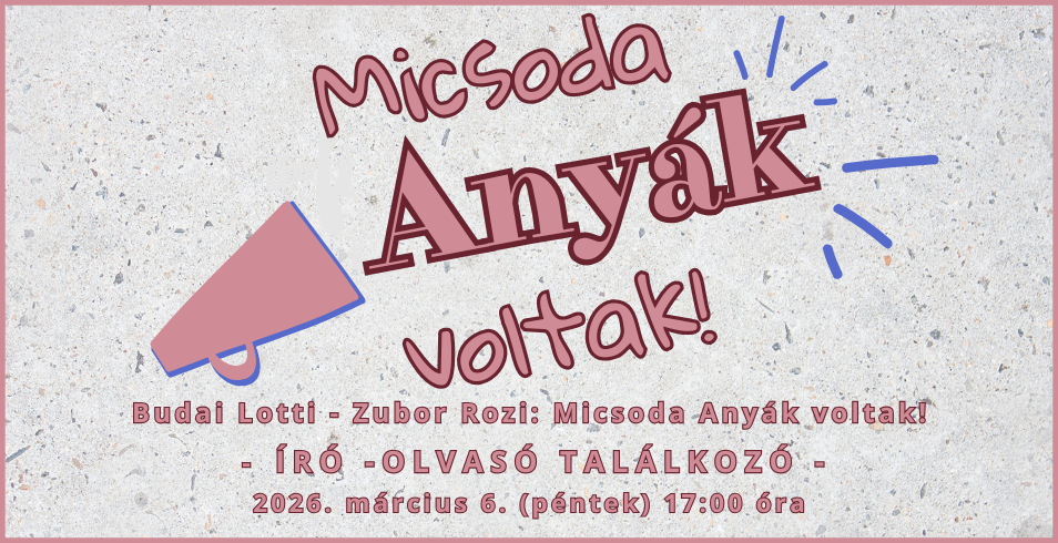 Szeretettel meghívunk mindenkit a március 6-án rendezett könyvbemutatóval összekötött író-olvasó találkozóra Budai Lottival! Az ötlet ehhez a különleges nőtörténeti kötethez Magyarország egyik leghallgatottabb podcastsorozata, a Mesélj Anyukám! közben született meg. A két írónő munkája betekintést nyújt történelmünk híres női alakjainak az anyai életébe - miként nevelték saját gyermekeiket? Hogyan fogalmazódott meg bennük az anyai identitás? Saját anyáik felé milyen érzelmekkel fordultak? Egy nagyon izgalmas könyv és este áll előttünk!