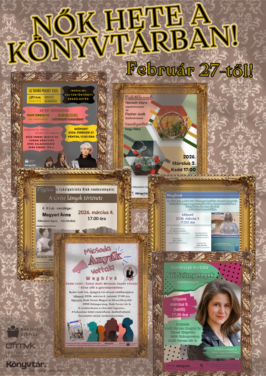 Az idei nőnap alkalmából könyvtárunk tematikus programokkal készült az érdeklődőknek! Február 27. és március 9. között a rendezvénysorozat keretében szinte minden nap témához illő előadások várják vendégeinket.