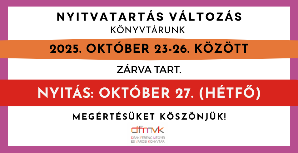 Könyvtárunk a plakáton jelzett napokon zárva lesz! Kérjük szíves megértésüket!