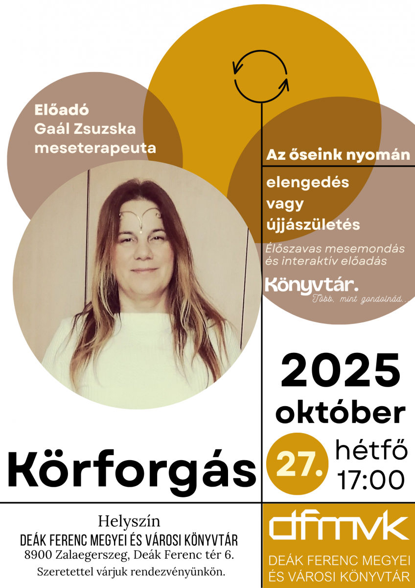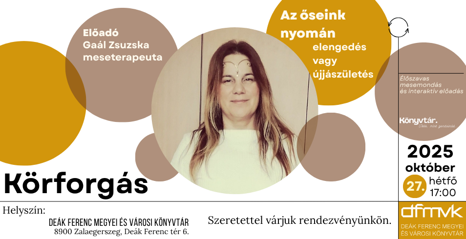 Körforgás rendezvénysorozatunk következő programja kerül megrendezésre Október 27-én! Gaál Zsuzska meseterapeuta ezúttal "Az őseink nyomán" címmel tart előadást!