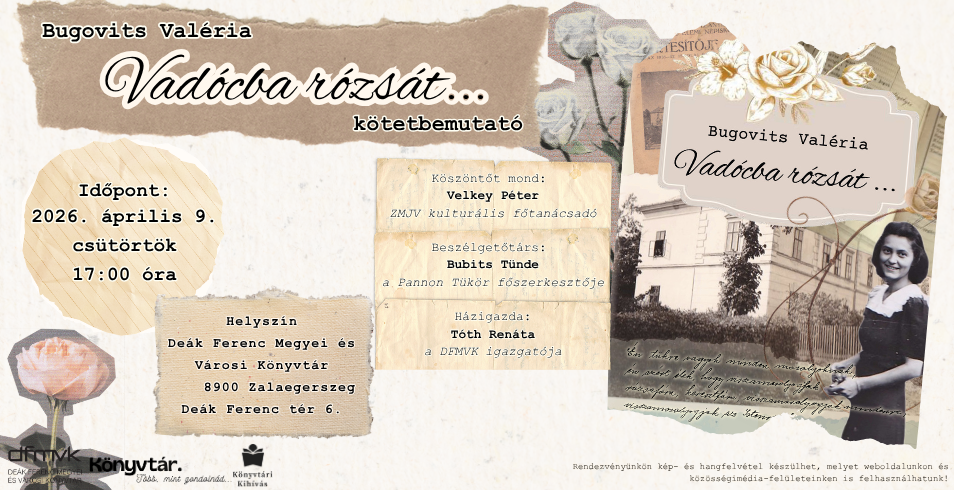 Szeretettel meghívunk mindenkit a Vadóczban rózsát... című könyv kötetbemutatójára április 9-én!