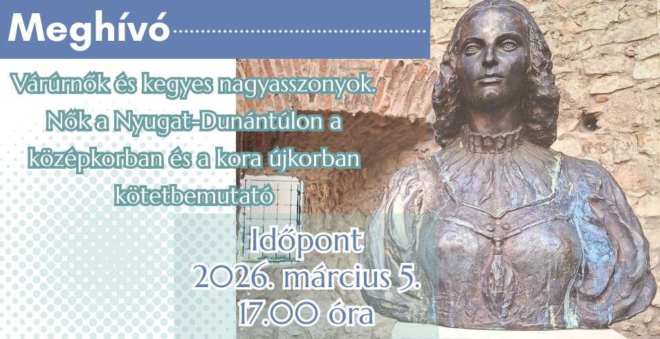 Szeretettel meghívunk mindenkit március 5-én a "Várurnők és kegyes nagyasszonyok. Nők a Nyugat-Dunántúlon a középkorban és kora újkorban" kötetbemutatóra! Dr. Bilkei Irén, a MNL Zala Vármegyei Levéltár címletes igazgatója, a könyv írója, és Pánczél Petra kulturális újságíró fognak előadást tartani egy beszélgetés formájában. Az írónő saját, több évtizedes munkássága alatt összegyűjtött jegyzeteiből született meg ez a kötet, ami 17 fejezeten keresztül nyújt a közönségnek betekintést a 16. századi nyugat-dunántúli nők életébe.